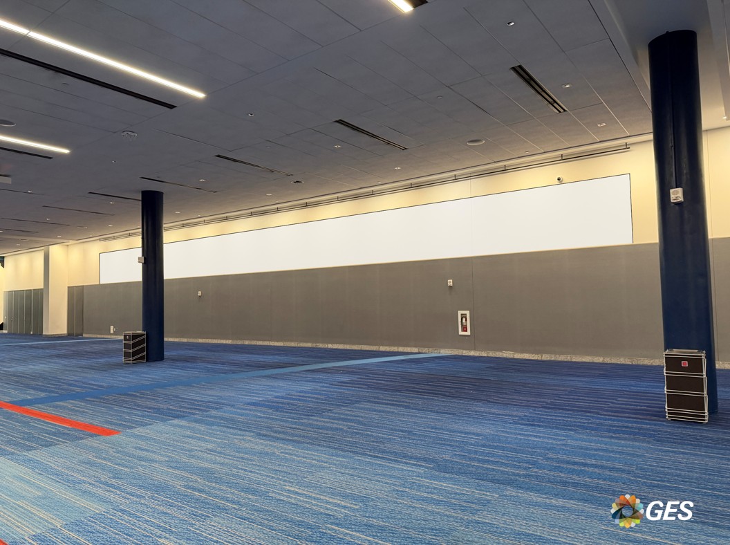 NOTE: placement is centered between two columns. Full length of available rigging is 77’ long.
