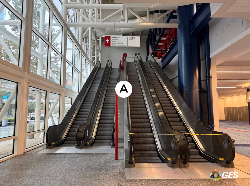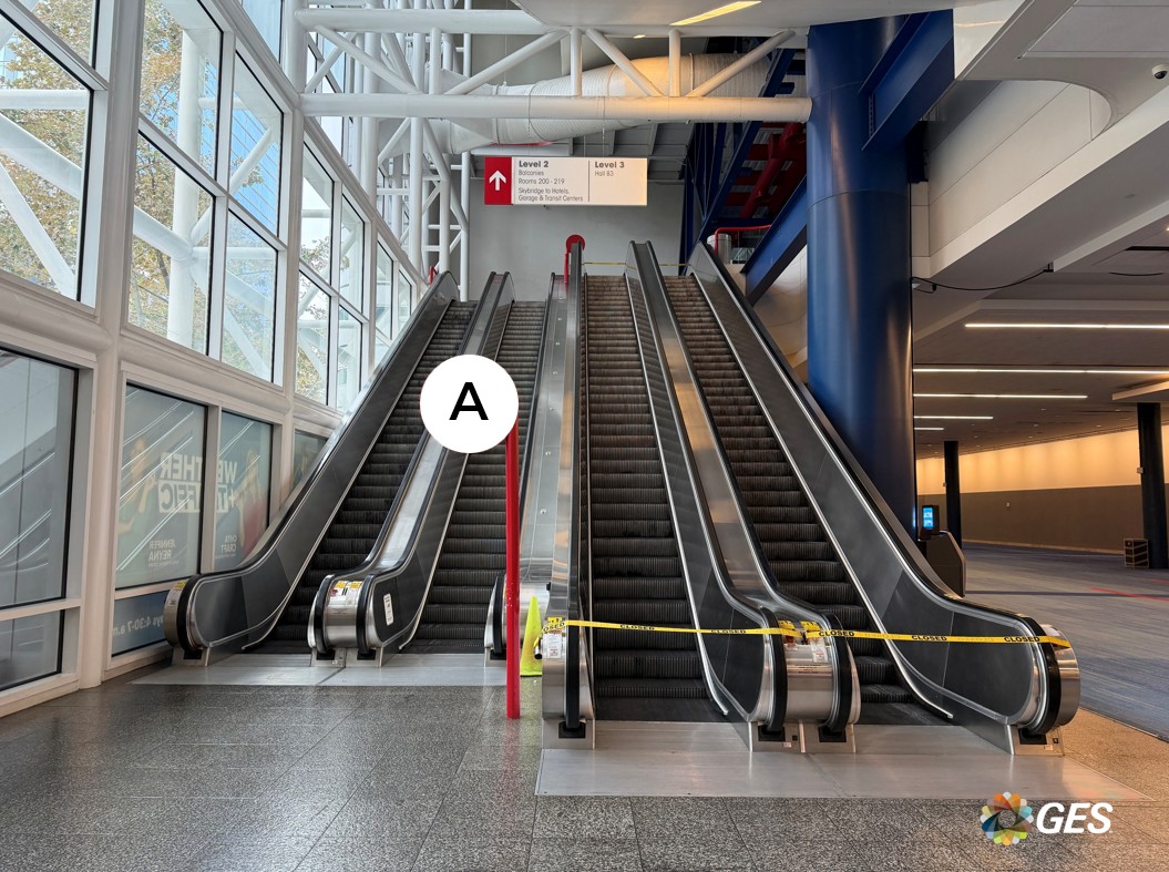 A = 715” long x 11.5” wide (qty 2) Single-sided vinyl banner No pockets Placed between escalators Located on level one in the Hall B lobby up to level two Add to cart