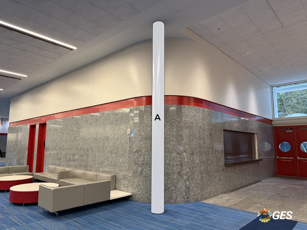 A = 24” Diameter (qty 2) Single sided graphic Phototex / PSV Applied to facility structure Located on level one in front of escalator in the Hall B lobby up to level two Add to cart