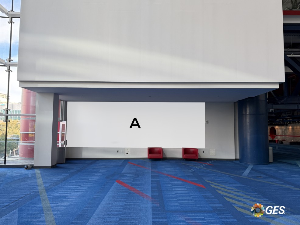 A = 32’ wide x 14’ high Single sided banner 4” pockets top and bottom Mounted on interior hang points Located on level two near the Avenida Balcony foyer Add to cart
