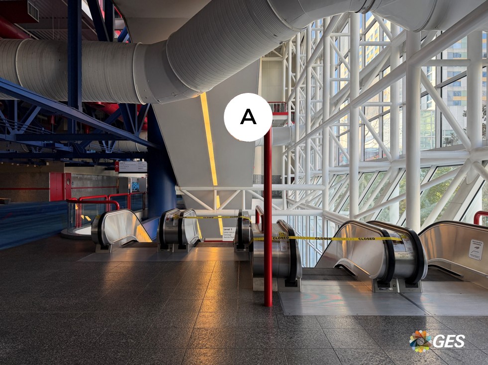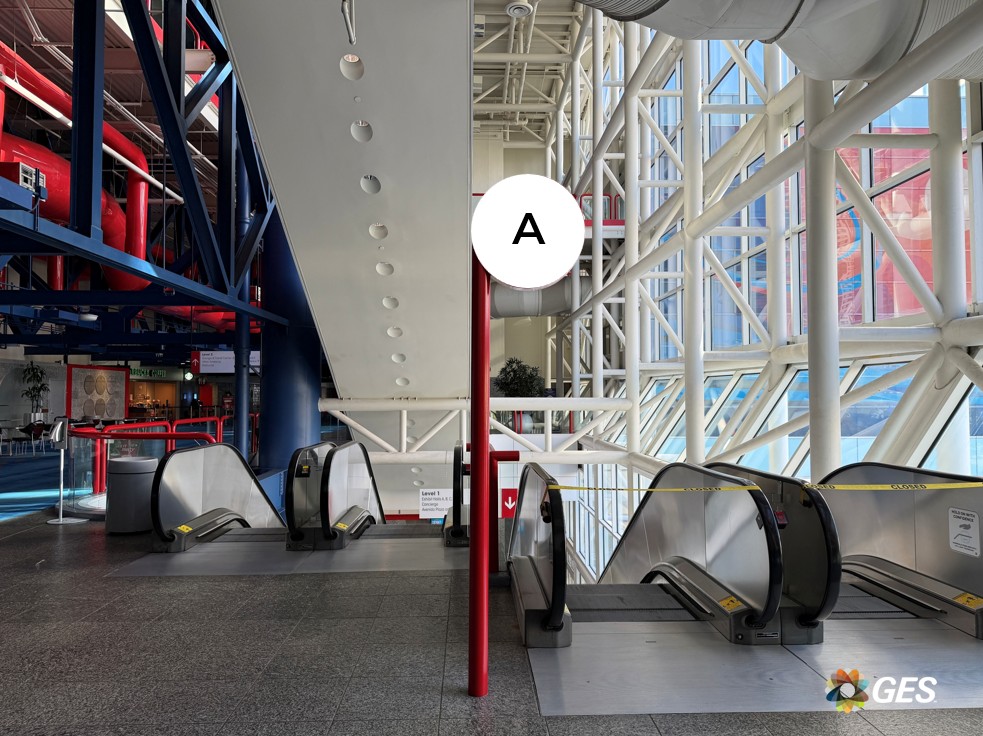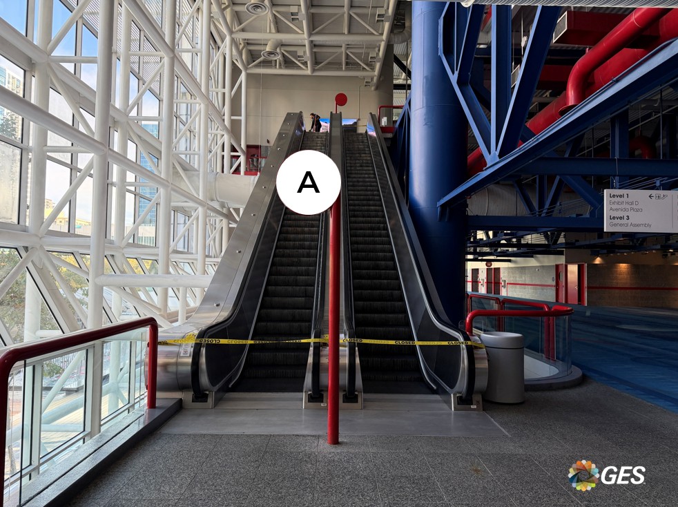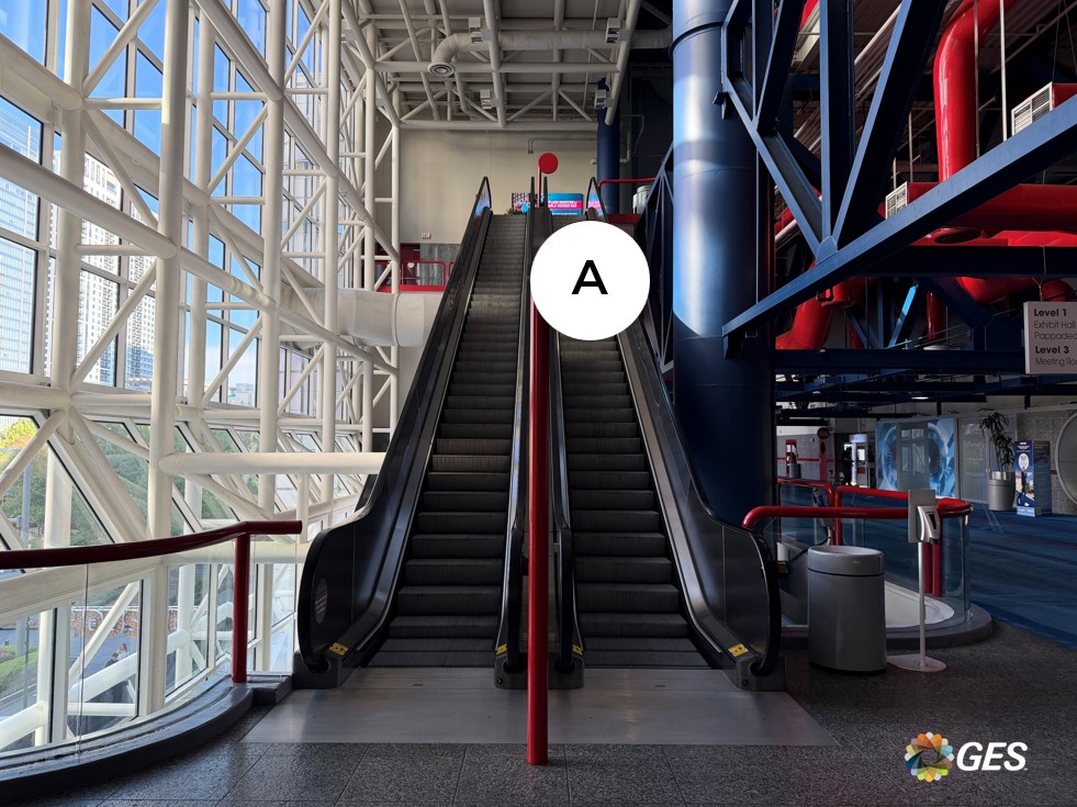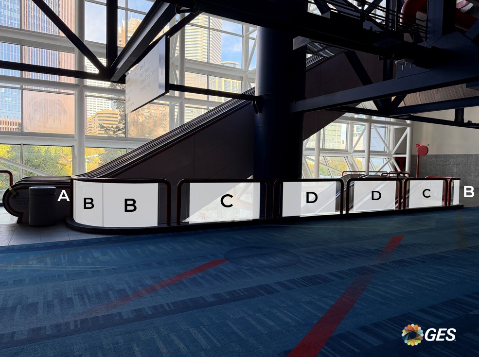 A = 722” long x 11.75” wide Single-sided vinyl banner No pockets Placed between escalators Located on level two near Registration D up to level three Add to cart