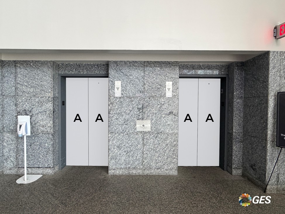 Outside sections measure 38.375” wide x 87.5” high. Middle sections are 38.5” wide x 87.5” high. All sections move when approached.